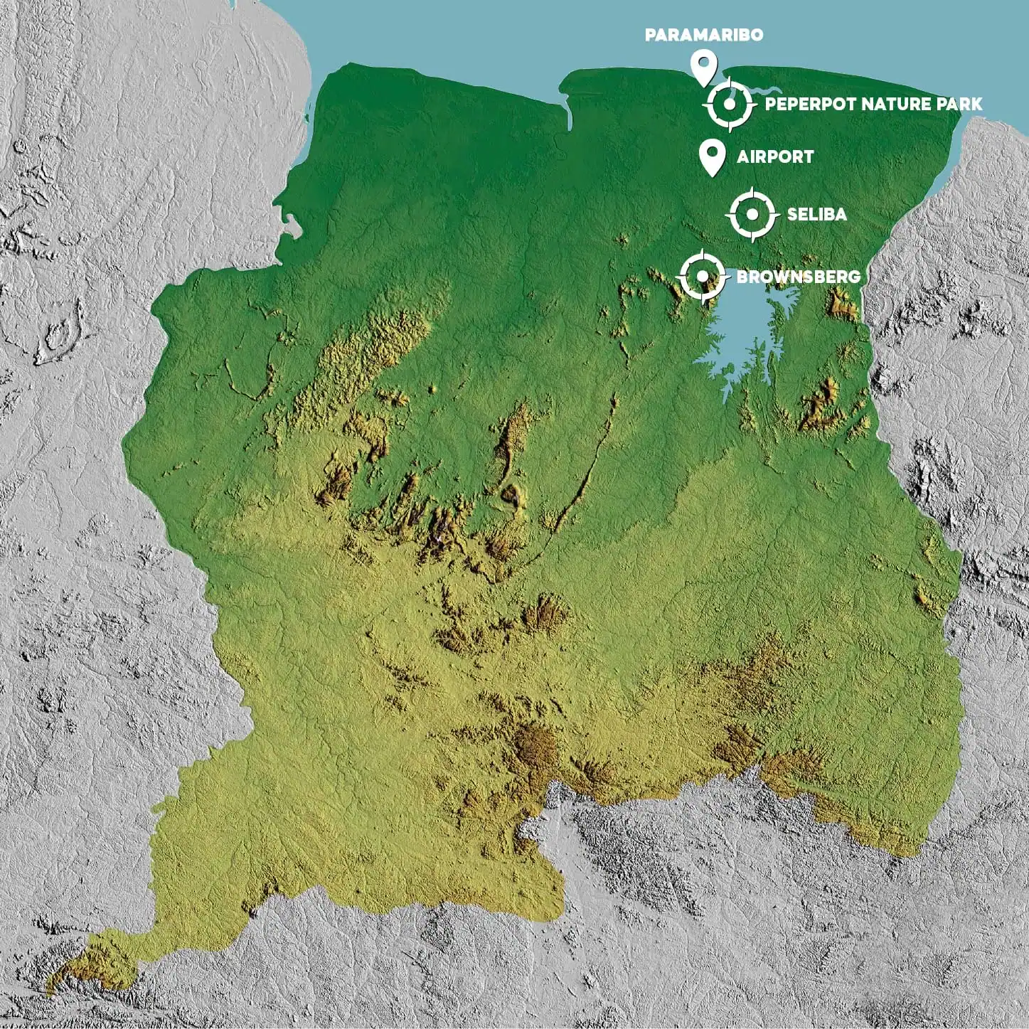 - Location nature reserve: Various ecosystems in Suriname (rainforest, savannah, river valleys)