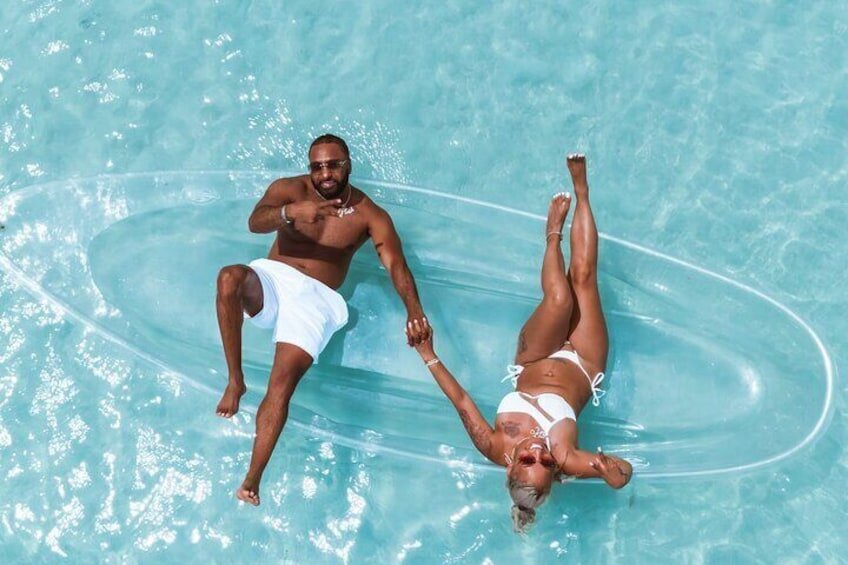 Upon arrival, our guests receive a brief introduction and go over the safety regulations and pose instructions. Once everything is ready, we get into the transparent kayak. With two assistants accompanying each traveler in the water, we guide them through the poses as the drone captures breathtaking photos. After the session, guests can view all photos and select their favorites for processing and delivery.