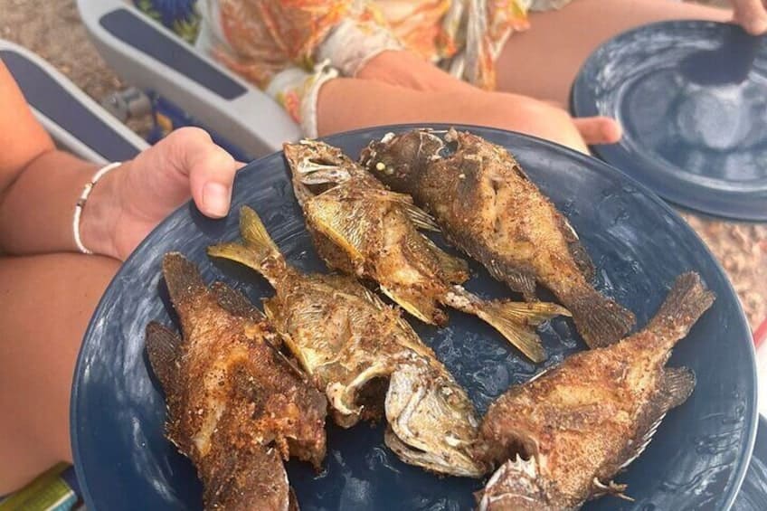 Snorkel y parrillada de pescado fresco en la playa (Bonaire)