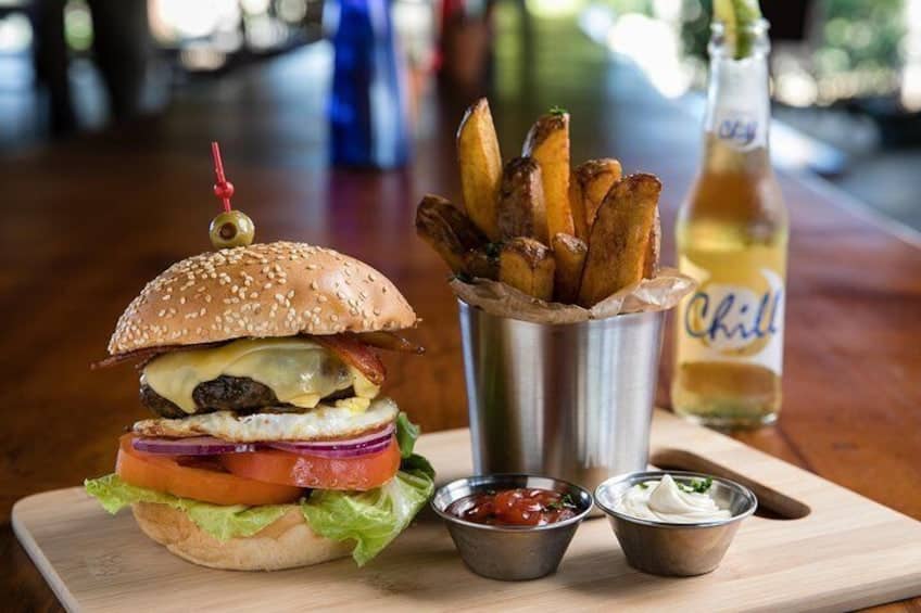 El almuerzo incluye una selección de nuestras deliciosas comidas caseras de inspiración local más populares y una cerveza local helada, un refresco o un batido de frutas.