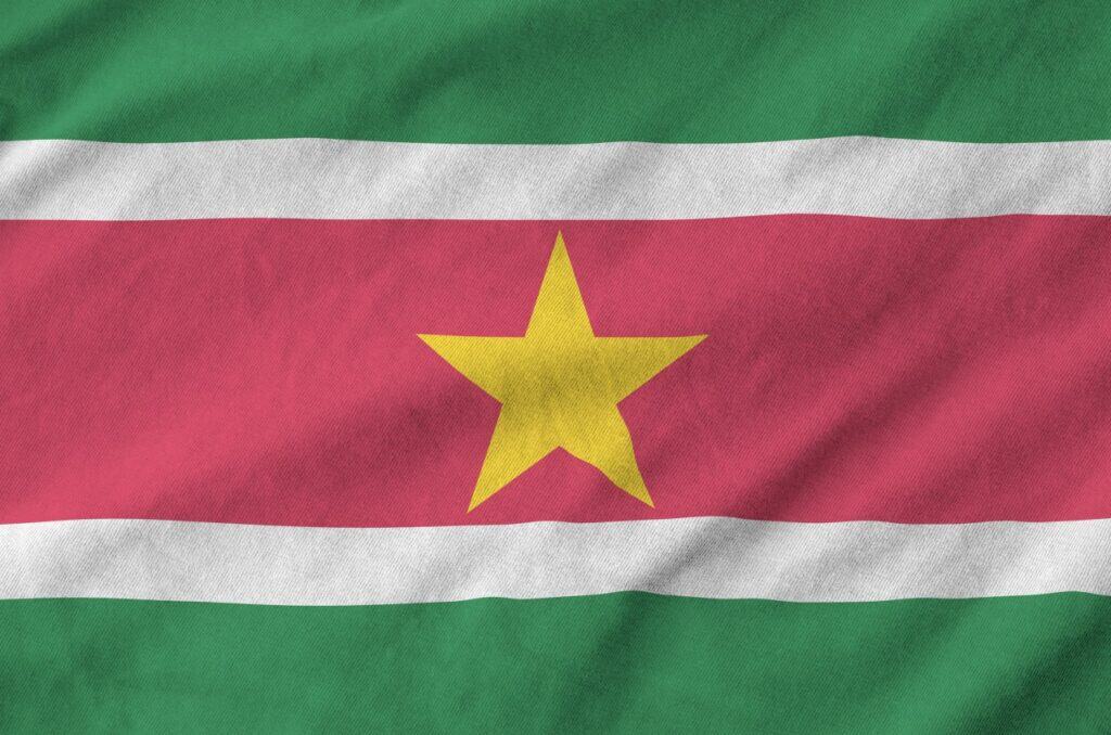En el período previo a la independencia, el gobierno de Surinam organizó un concurso de diseño para una nueva bandera nacional en 1975. Más de 270 entradas mostraron el diseño de Jack Pinas como el ganador, pero aún así se ajustó antes de su adopción. La bandera final, con cinco franjas horizontales (verde-blanco-rojo-blanco-verde) y una estrella amarilla de cinco puntas, fue adoptada oficialmente el 25 de noviembre de 1975, el día en que Surinam se independizó de los Países Bajos . Las franjas verdes simbolizan la fertilidad, el rojo representa el progreso y la lucha por una vida mejor, el blanco la libertad y la justicia, y la estrella irradia unidad y esperanza por un futuro dorado. La transición estuvo marcada por una ceremonia solemne en la que se quitó la antigua bandera de la unión o del gobernador, la tricolor holandesa o el panel blanco con cinco estrellas conectadas, y la nueva bandera se izó ceremonialmente en la Plaza de la Independencia en Paramaribo